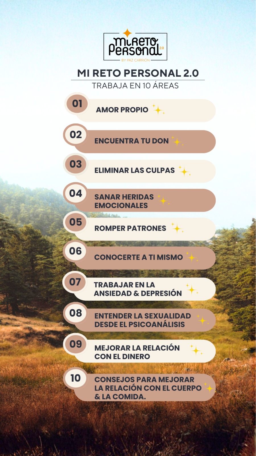 Mi reto personal equivale a una mini terapia online, funciona para ti si por primera vez vas a trabajar o estás trabajando en tu crecimiento personal, incluso si quieres fortalecer tu terapia y tener más material para trabajar esos temas en los que requieres mayor claridad porque sientes que todavía hay algo que no se ha resuelto.